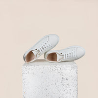 The Amalfi, our classic sneaker, brings to mind its namesake stretch of rugged Italian coastline. With a leather upper that is stitched to the sole and an incredibly lightweight sole, the Amalfi features wear-all-day comfort; gold eyelets and a fun accent on the back lend unique detail. Reminiscent of vivid blue skies, sparkling waters, and sunny lemon groves, these fresh, almost-white sneakers will spark so much joy.