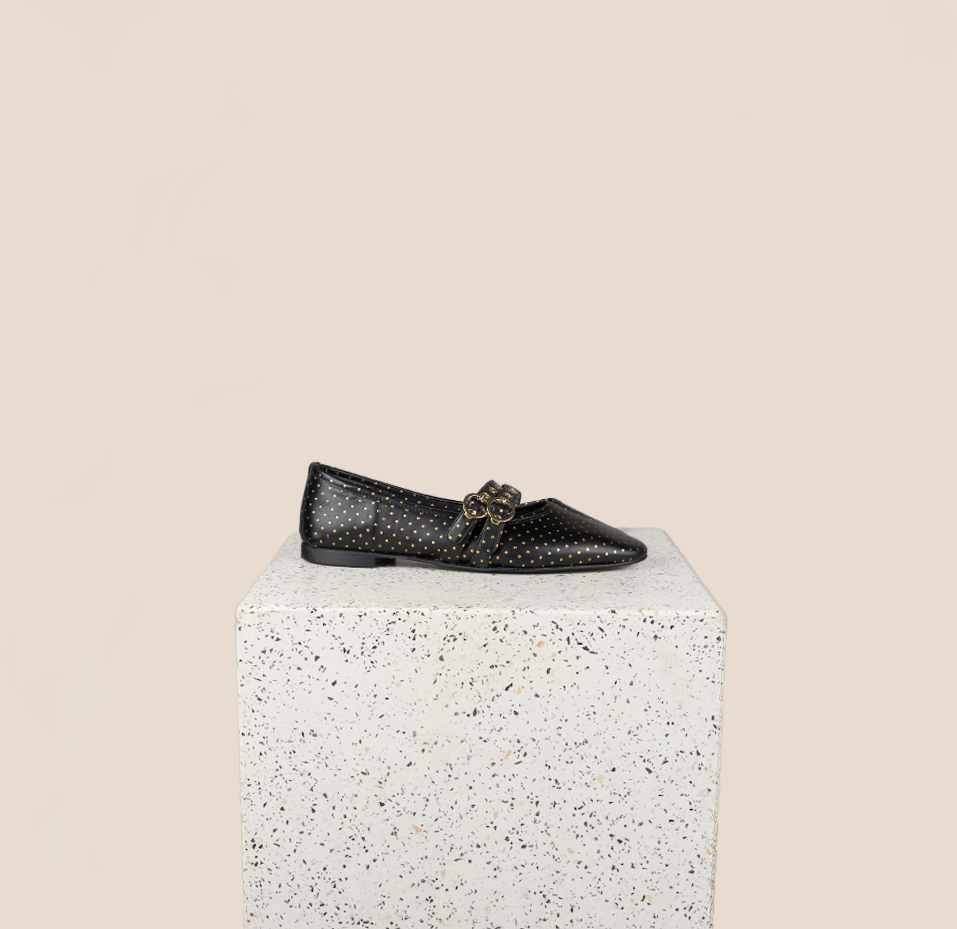 Como, our classic ballerina flat, has a longer toe box and a slim shape that elongates the legs to perfection. The low-stacked heel is comfortable for everyday wear, and a double buckle is the perfect addition for a stylish classic look.