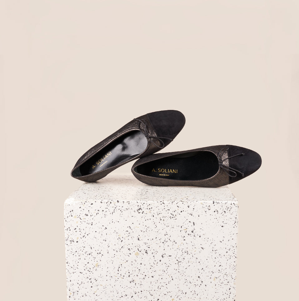 The Como - Black Suede/ bronze glimmer wardrobe staple.