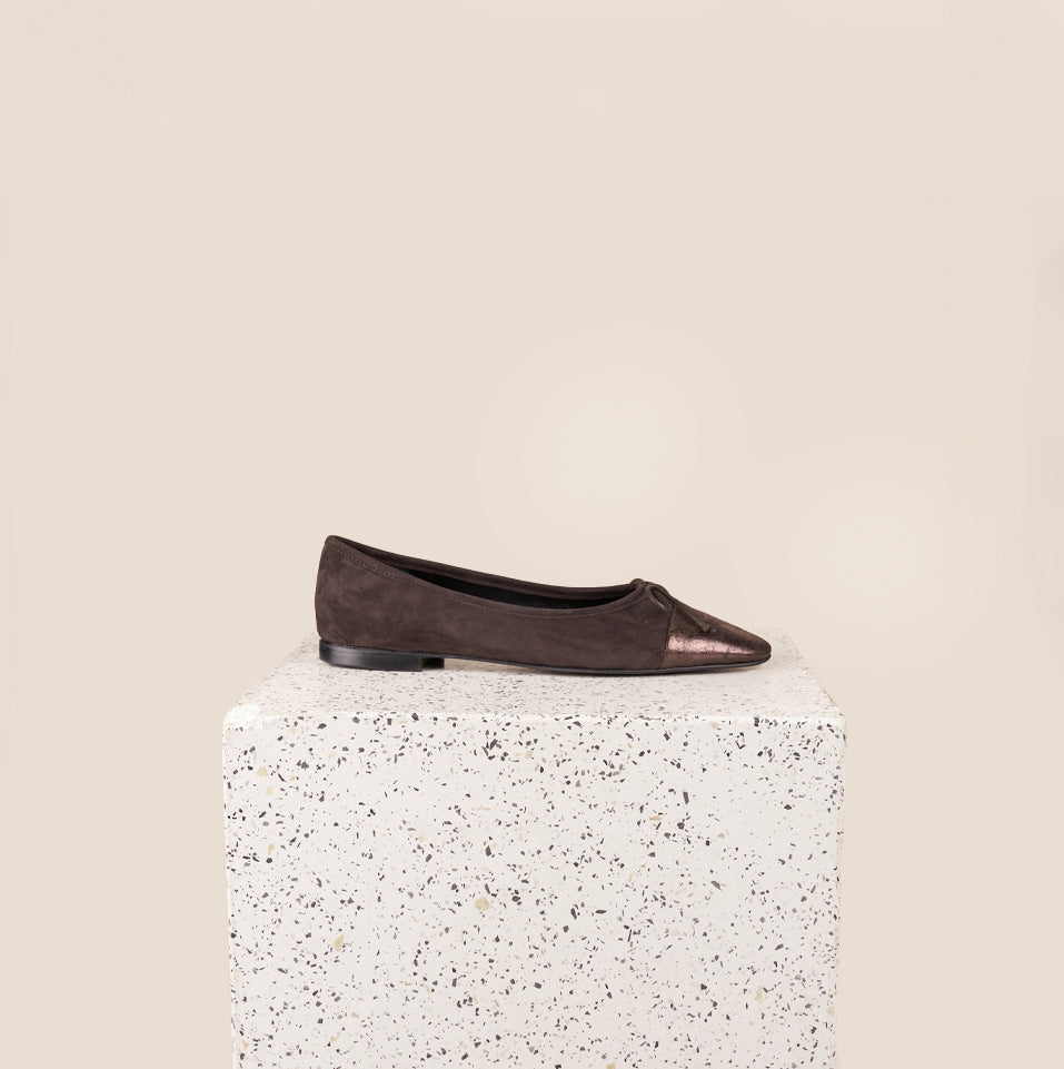 The Como, our classic ballerina flat, has a longer toe box and a slim shape that elongate the legs to perfection. The low stacked heel is comfortable for everyday wear, and a cotton bow adds apretty, feminine touch.