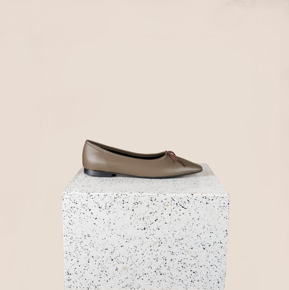 The Como, our classic ballerina flat, has a longer toe box and a slim shape that elongate the legs to perfection. The low stacked heel is comfortable for everyday wear, and a cotton bow adds a pretty, feminine touch.