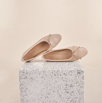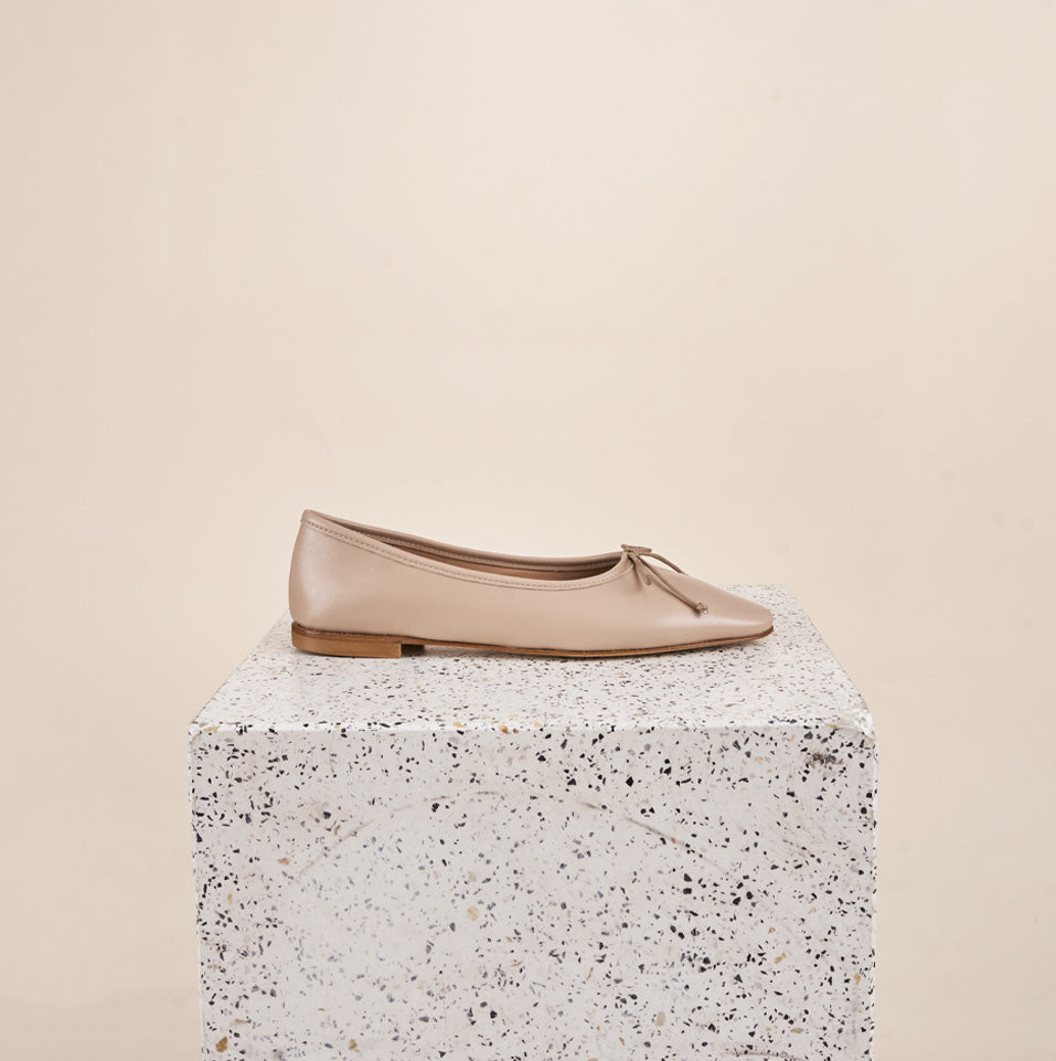 The Como, our classic ballerina flat, has a longer toe box and a slim shape that elongate the legs to perfection. The low stacked heel is comfortable for everyday wear, and a cotton bow adds a pretty, feminine touch.
