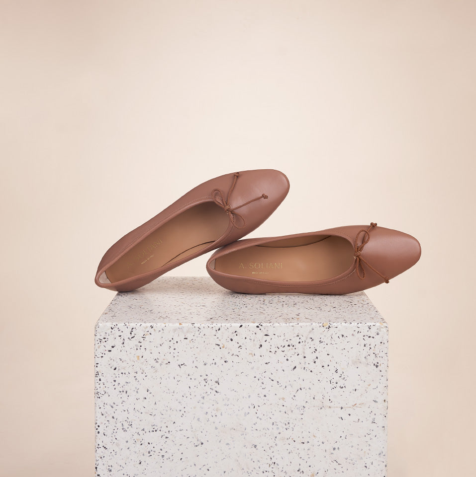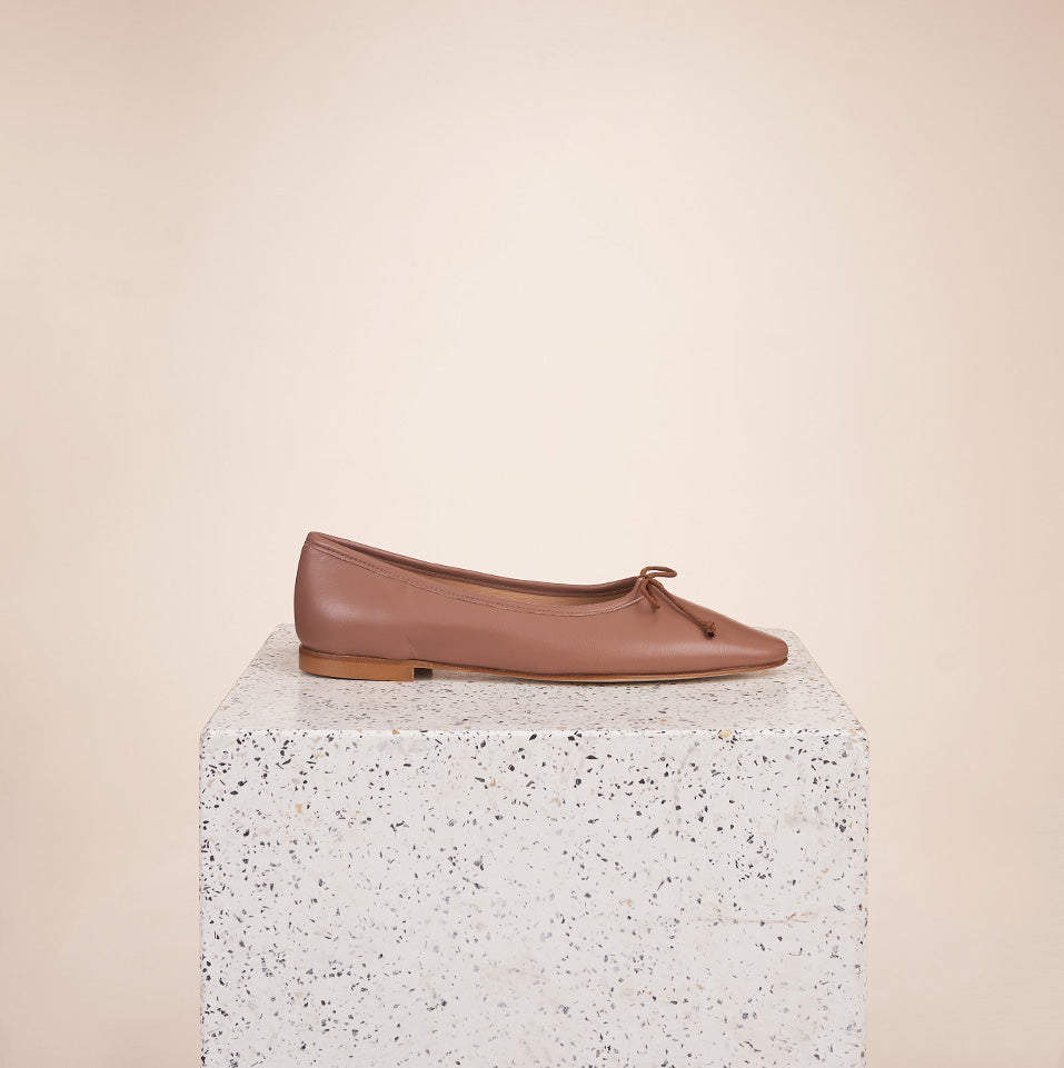 The Como, our new ballerina flat, has a longer toe box and a slim shape that elongate the legs to perfection. The low stacked heel is comfortable for everyday wear, and a cotton bow adds a pretty, feminine touch.