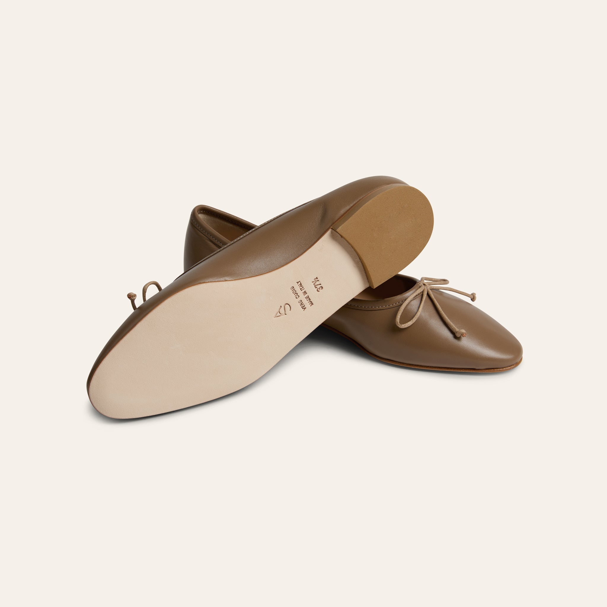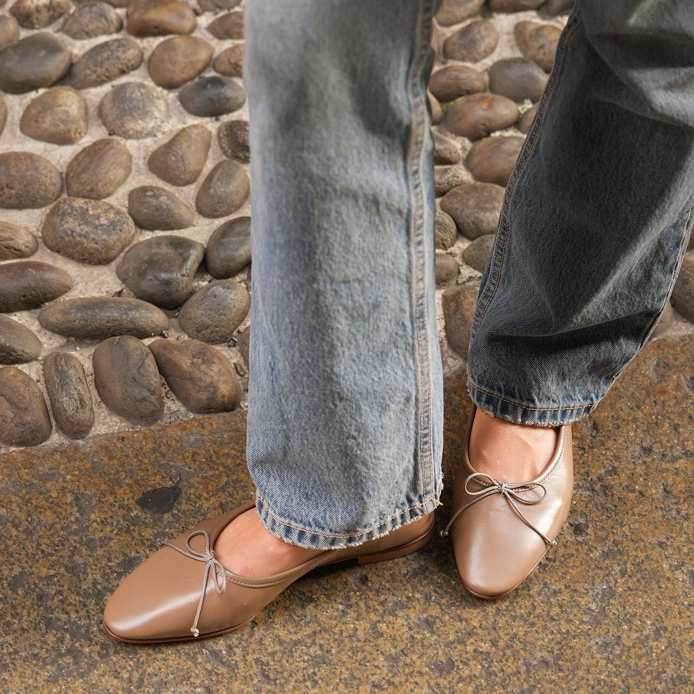 The Como, our new ballerina flat, has a longer toe box and a slim shape that elongate the legs to perfection. The low stacked heel is comfortable for everyday wear, and a cotton bow adds a pretty, feminine touch.
