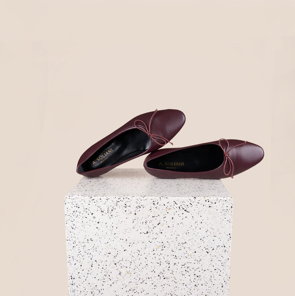 The Como, our classic ballerina flat, has a longer toe box and a slim shape that elongate the legs to perfection. The low stacked heel is comfortable for everyday wear, and a cotton bow adds a pretty, feminine touch.
