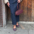 The Como, our classic ballerina flat, has a longer toe box and a slim shape that elongate the legs to perfection. The low stacked heel is comfortable for everyday wear, and a cotton bow adds a pretty, feminine touch.