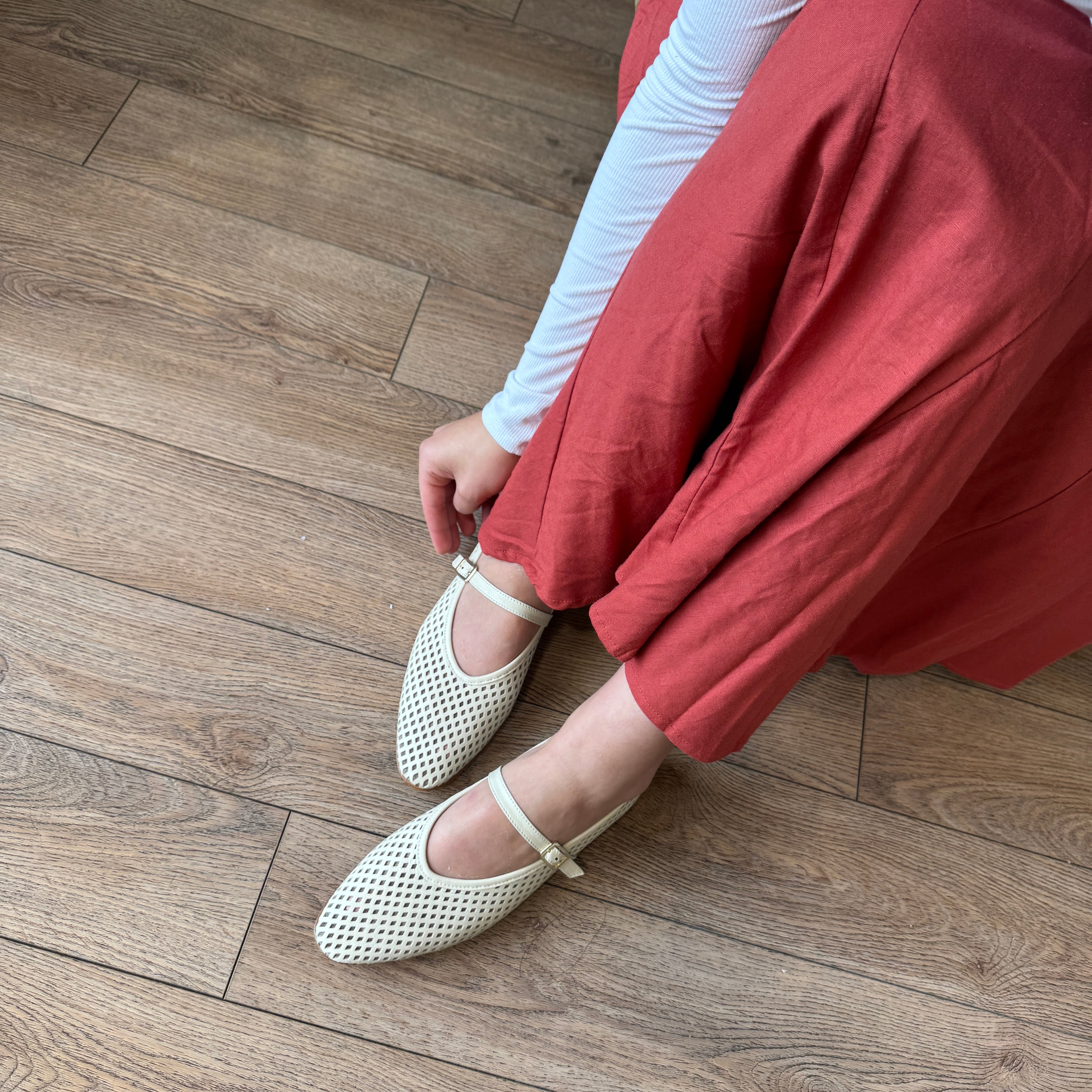 A modern interpretation of the classic ballerina, Cori is designed with an elongated toe box and a sleek silhouette that naturally flatters the legs. The delicate Mary Jane buckle adds a refined, feminine touch, while the low stacked heel ensures comfort for all-day wear. Handcrafted in Italy from the finest Italian nappa leather, Cori embodies effortless elegance with a timeless appeal.