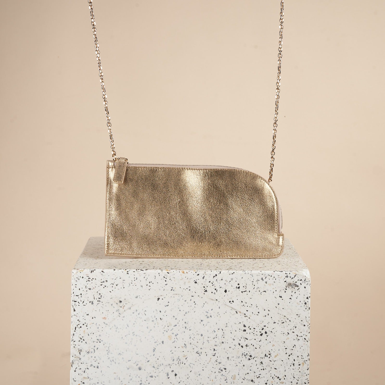 Introducing... Our first ever bag! Made with smooth leather or luxurious printed suede, this trendy new accessory is the perfect way to keep your on-the-go necessities close by. An adjustable strap allows you to wear it multiple ways, while an inside pocket and a zipper closure keep it practical. Gold detailing adds a final stylish touch.