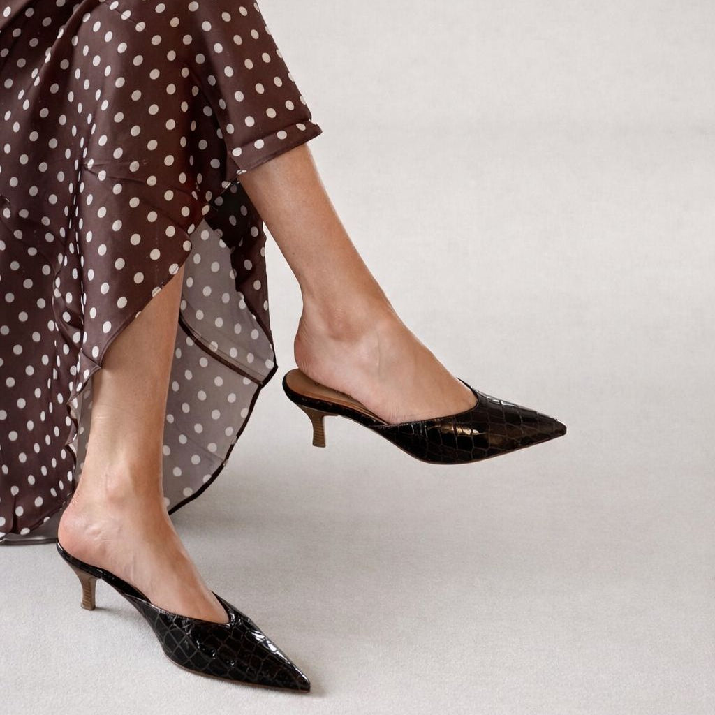 The Savoia heel is our interpretation of timeless Italian femininity: refined, confident, and quietly powerful. Handcrafted in Italy from supple leather, Savoia features a sharp pointed toe and sculpted kitten heel that creates a sleek, elongated silhouette with effortless ease. Designed for all-day elegance, the softly padded leather insole provides comfort without compromising the shoe’s refined profile. The backless slip-on design offers a modern, understated sophistication that transitions seamlessly from tailored trousers and denim to dresses and evening wear.