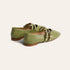 The Udine, a modern take on the classic Como flat, features a sleek elongated toe box and a refined shape that perfectly complements the leg. Its low-stacked heel offers all-day comfort, while the elegant double buckles add a touch of sophistication and timeless style.